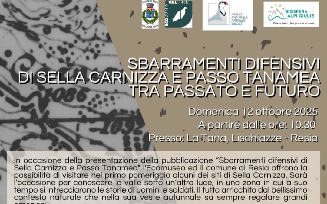 L’Ecomuseo Val Resia e il Comune di Resia offrono la possibilità di conoscere e visitare alcuni siti fortificati risalenti al periodo storico compreso tra gli anni ’30 e ’90 del secolo scorso.